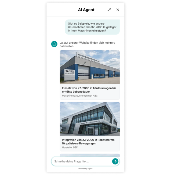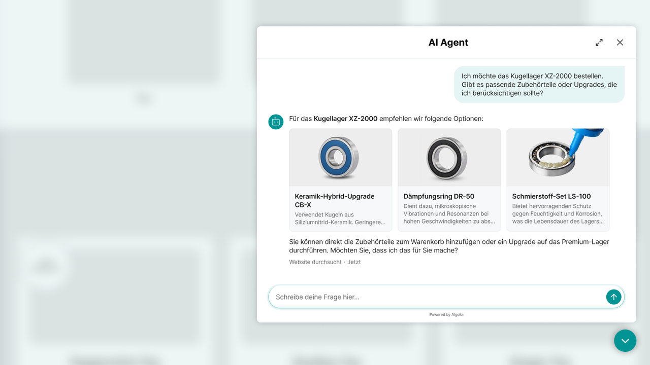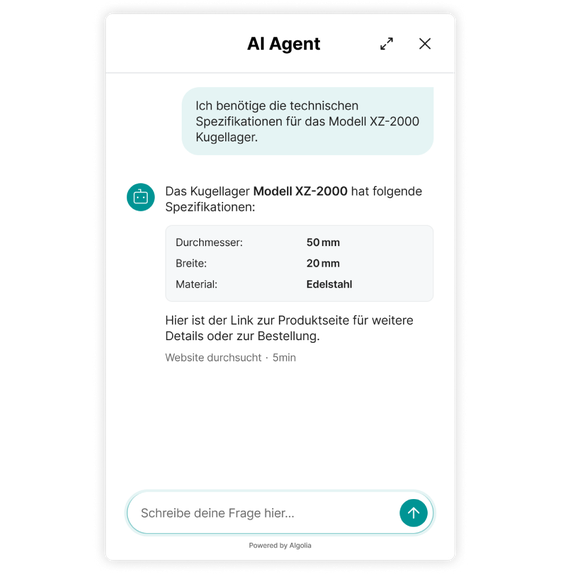 Die Algolia-Infrastruktur ist auf schnelle Reaktionszeiten und hohe Lasten ausgelegt. Selbst bei internationaler Nutzung oder hohen Anfragevolumina bleibt der Agent leistungsfähig. Unternehmen können so eine konsistente und schnelle User Experience über alle Kanäle hinweg sicherstellen.