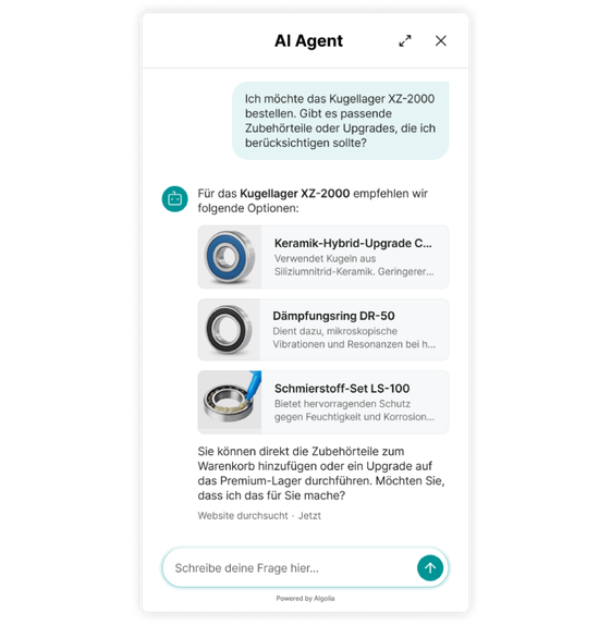 „Ich möchte das Kugellager XZ-2000 bestellen. Gibt es passende Zubehörteile oder Upgrades, die ich berücksichtigen sollte?“