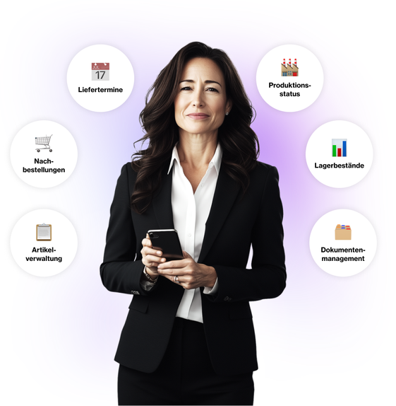 Es wurde ein Self-Service-Portal realisiert, das Kundinnen und Kunden jederzeit auftragsbezogene Dokumente wie Lieferscheine, Rechnungen, Auftragsbestätigungen und Werksatteste bereitstellt. Die Dateien sind unmittelbar in der jeweiligen Übersicht verfügbar, werden automatisiert aktualisiert und können heruntergeladen werden. Die Lösung zielt darauf ab, die Transparenz entlang der Supply Chain zu erhöhen.