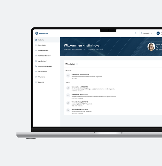 Um Kunden mehr Eigenständigkeit in der Interaktion mit WAELZHOLZ zu ermöglichen, wurde ein Self-Service-Ansatz verfolgt, der konkrete Mehrwerte im Tagesgeschäft schafft. Dabei ging es nicht um eine vollständige Neuausrichtung, sondern um die gezielte Erweiterung vorhandener digitaler Prozesse – und das zusätzlich zur persönlichen Betreuung der direkten Ansprechpartner.