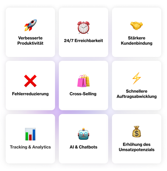 Durch die nahtlose Anbindung an bestehende ERP- und CRM-Systeme erhalten Ihre Kunden jederzeit aktuelle Informationen zu Preisen, Lieferzeiten und Lagerbeständen. Vor allem in der Auftragsabwicklung und im Innendienst werden manuelle Aufwände erheblich reduziert, da sich Abläufe automatisieren und Rückfragen minimieren lassen. Das senkt die Fehlerquote, beschleunigt Prozesse und steigert die Produktivität.